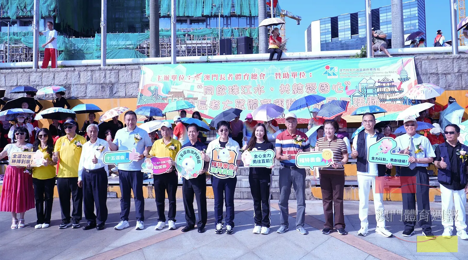 由長者體育總會主辦、體育局贊助,慶祝中華人民共和國成立76周年、澳門特別行政區政府成立26周年,“同飲珠江水、共結愛國心”珠澳長者大眾體育運動交流展示活動今日早上在南灣湖水上活動中心隆重開幕,近兩