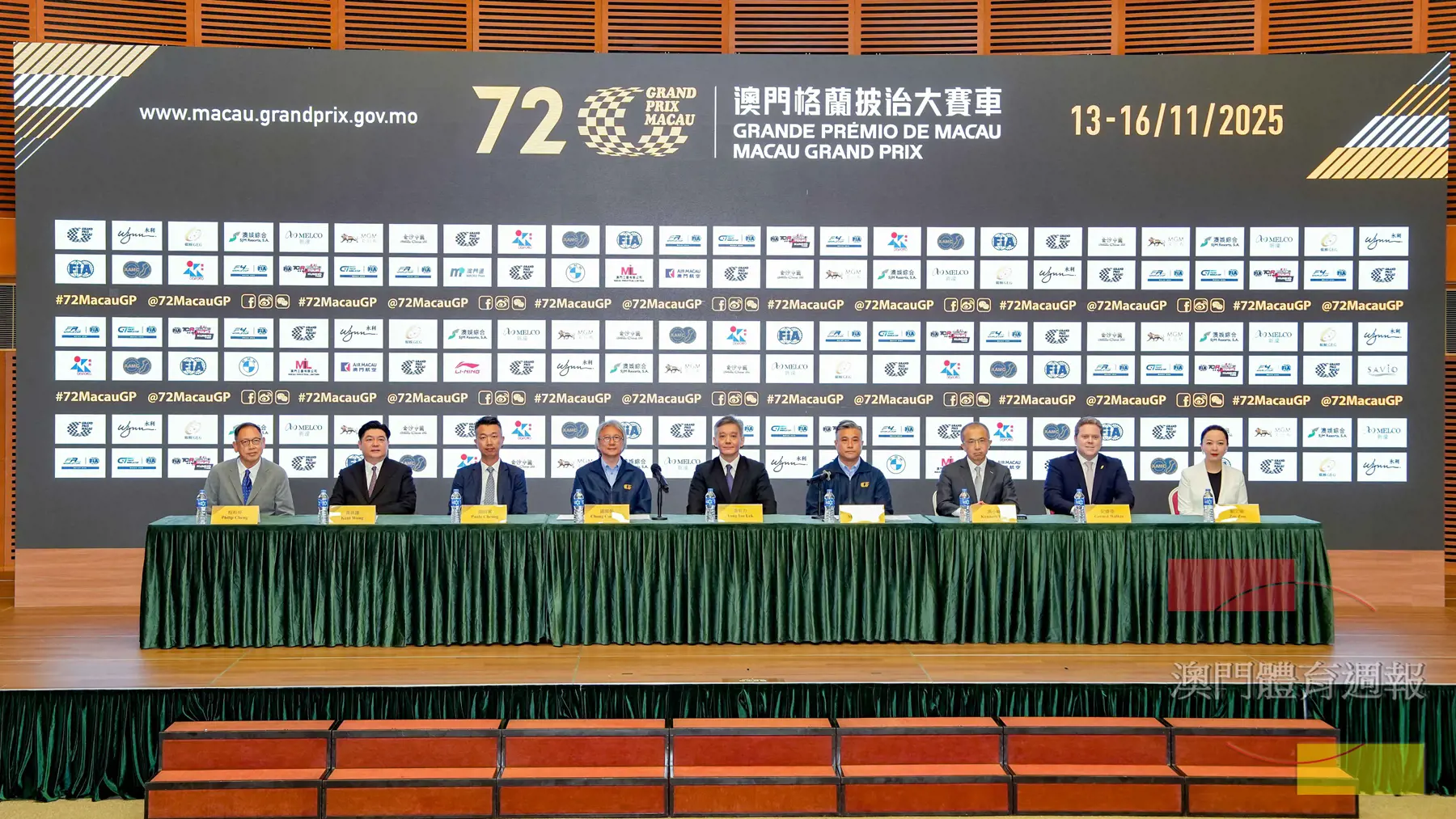 澳門年度國際體壇盛事—“第72屆澳門格蘭披治大賽車”將於11月13日至16日舉行,澳門大賽車組委會今(13日)午12時於澳門科學館會議廳舉行新聞發佈會,介紹今屆7項賽事,包括國際汽聯FR世界盃、GT
