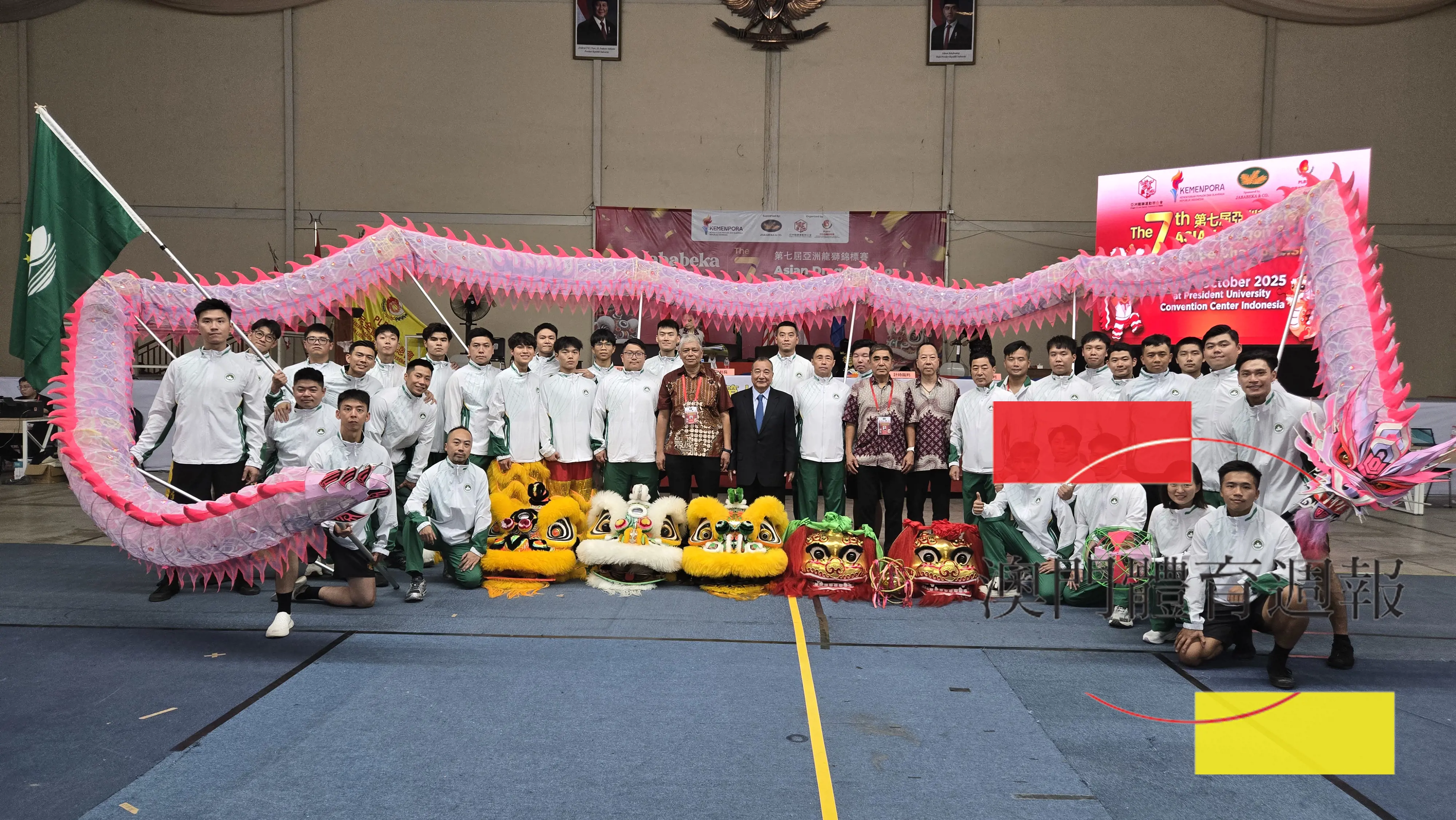 在印尼雅加達舉行的第七屆亞洲龍獅錦標賽進入最後一日賽事,澳門龍獅代表隊表現氣勢如虹,單日橫掃三面金牌,最終以4金、3銀、1銅圓滿收官。澳門龍獅代表隊揚威亞洲錦標賽賽事最後一天,澳門隊捷報頻傳。上午隊伍