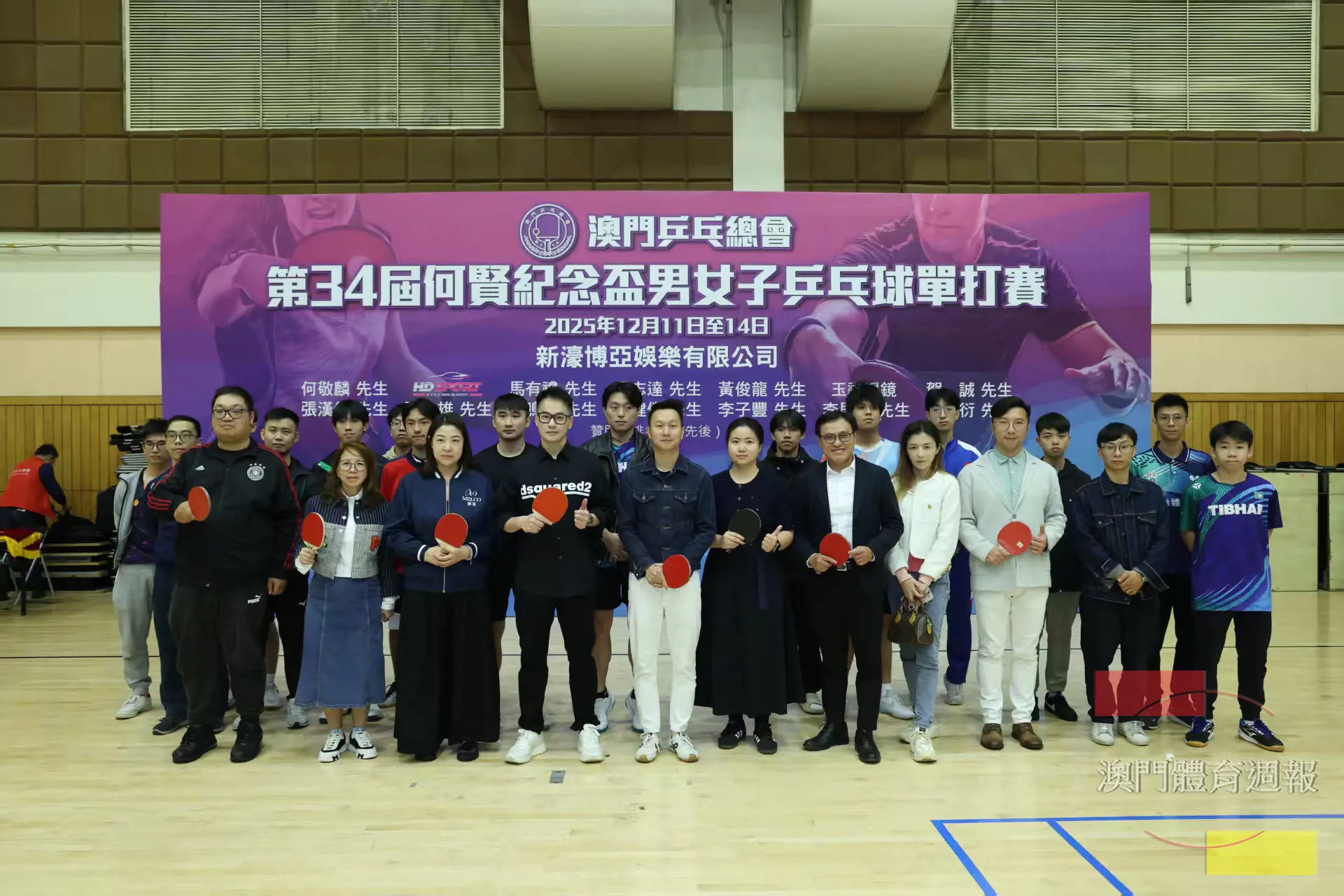 由澳門乒乓總會主辦「第34屆何賢紀念盃男、女子乒乓球單打賽」昨日(11日)昨日開打,賽事一連四日 (12月11日至14日)假澳門工人體育場A館進行,冠軍決賽將於本週日(14日)下午七時進行。 今屆賽