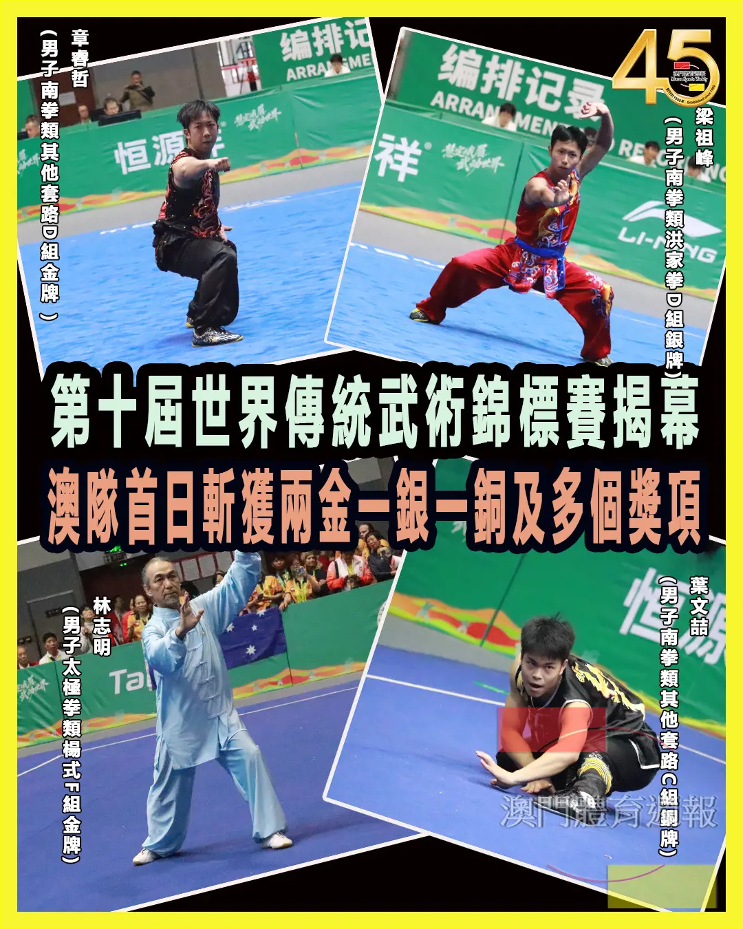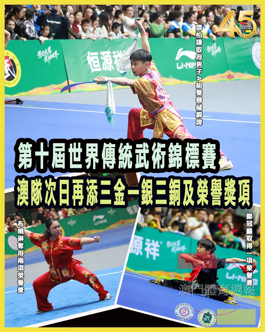2025 年第十屆世界傳統武術錦標賽第二個比賽日(18日),中國澳門代表隊延續首日強勁勢頭,在太極拳、刀術、棍術等多個項目中持續突破。全天賽事共斬獲 3枚金牌、1 枚銀牌、3 枚銅牌及多項一、二、三等