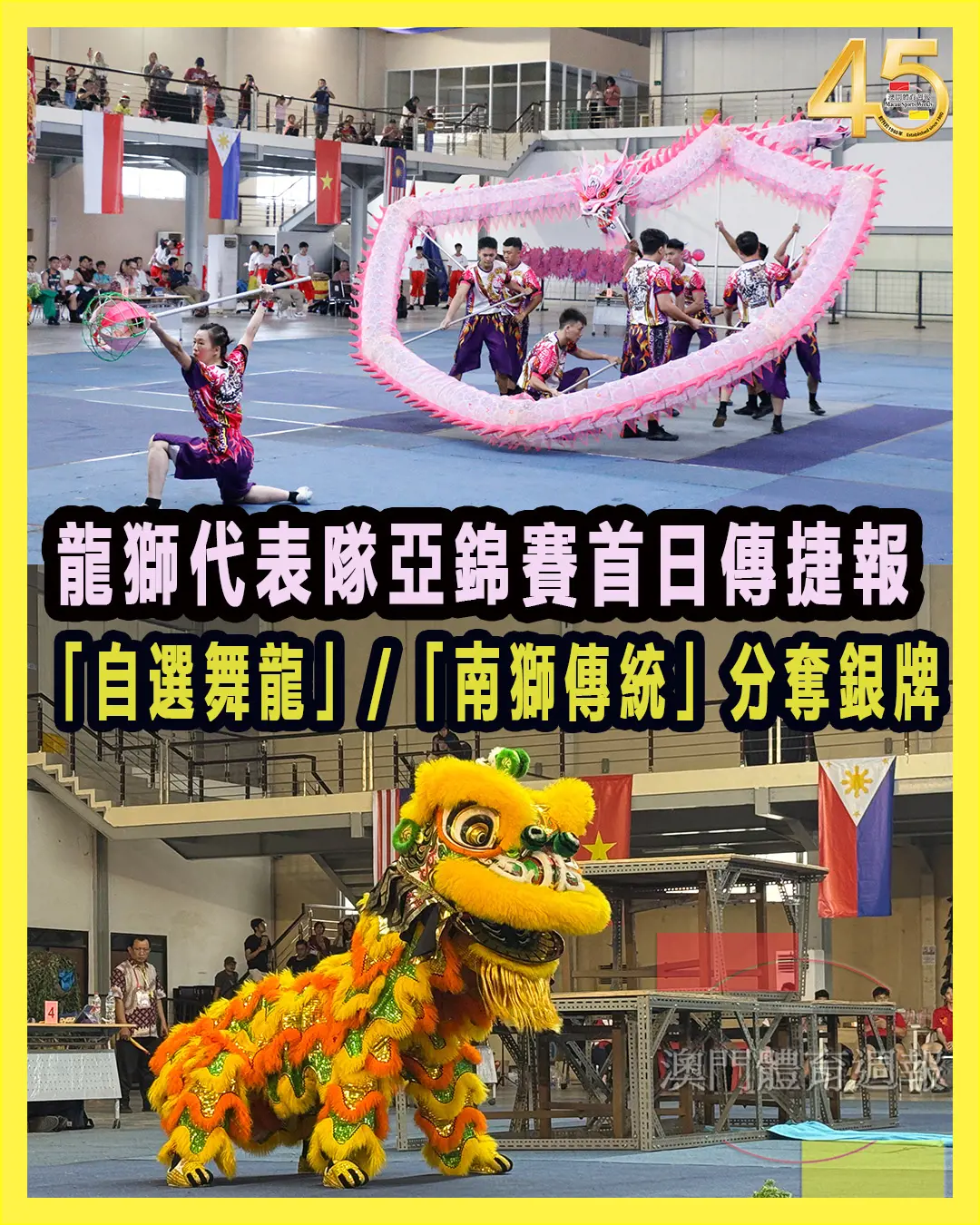正在印尼雅加達舉行的「第七屆亞洲龍獅錦標賽」賽事首日澳門龍獅代表隊已傳來捷報。隊伍憑藉出色表現,於目前已完賽的「自選舞龍」及「南獅傳統」項目中,分別勇奪第二名佳績。是次賽事雲集亞洲多個國家及地區的頂尖