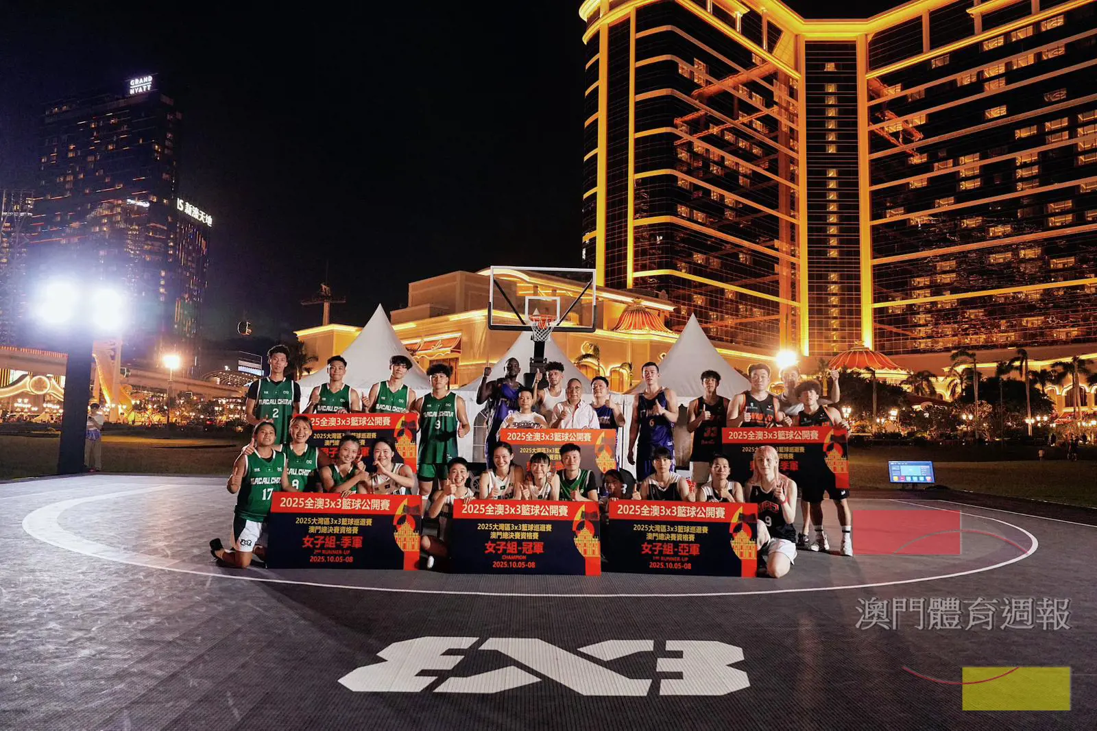 2025全澳3x3籃球公開賽昨日(7日)假永利皇宮南門戶外草坪爭奪冠亞季軍,東道主澳門集訓隊1奪得女子組冠軍封后。男子組方面,澳門集訓隊奪得亞軍,由廣州球棋奪得桂冠。獲得賽事前三名的隊伍將直接晉級