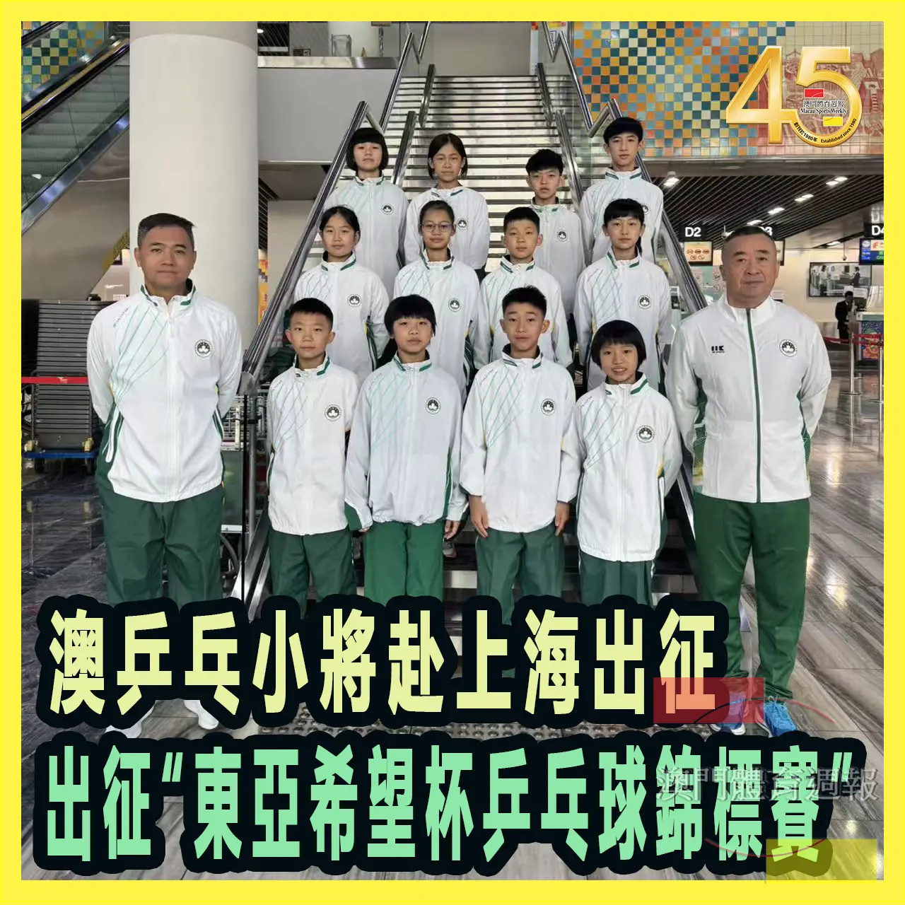 澳門乒乓總會代表隊將於11月27日至30日,前往上海市參加“第34屆東亞希望杯乒乓球錦標賽”。澳門代表隊已正式啟程前往賽事征途。團隊所有球員均由本年全澳男女子兒童單打賽前八名組成的比賽中脫穎而出。代表