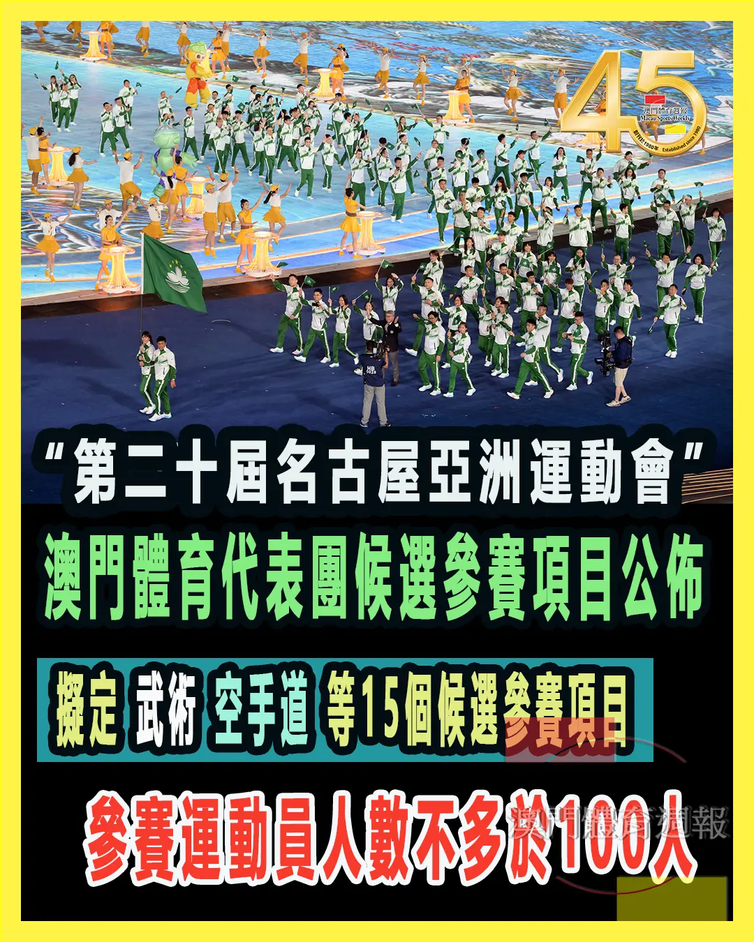 『第二十屆亞洲運動會』將於2026年9月19日至10月4日在日本愛知縣·名古屋舉行。為推進亞運會參賽籌備工作,日前,中國澳門體育暨奧林匹克委員會與體育局召開了參賽項目評選工作會議。經分析及討論後,擬